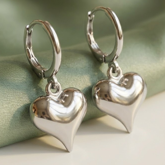 Brinco Feminino Argolinha Coração Aço Inoxidável Cirúrgico Uso diário Antialérgico