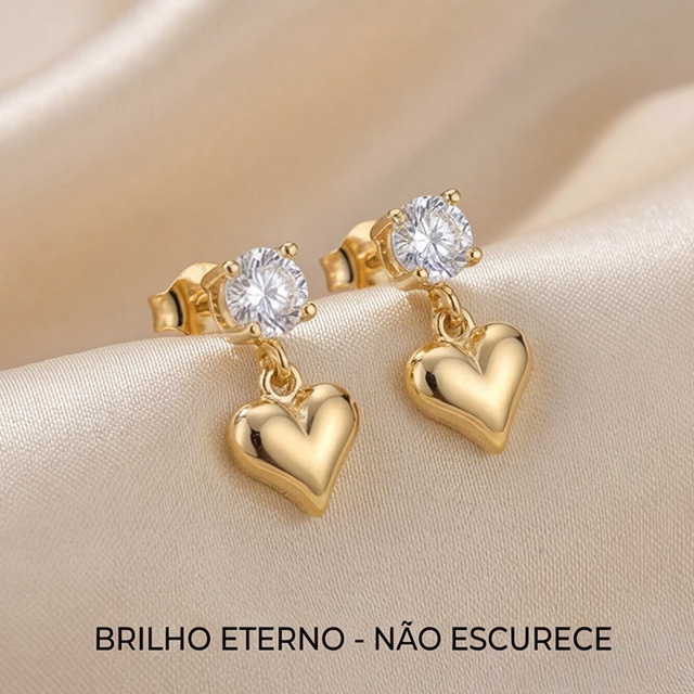 Brinco Feminino Coração com Zircônia 18K • Não Escurece • Luxo Delicado