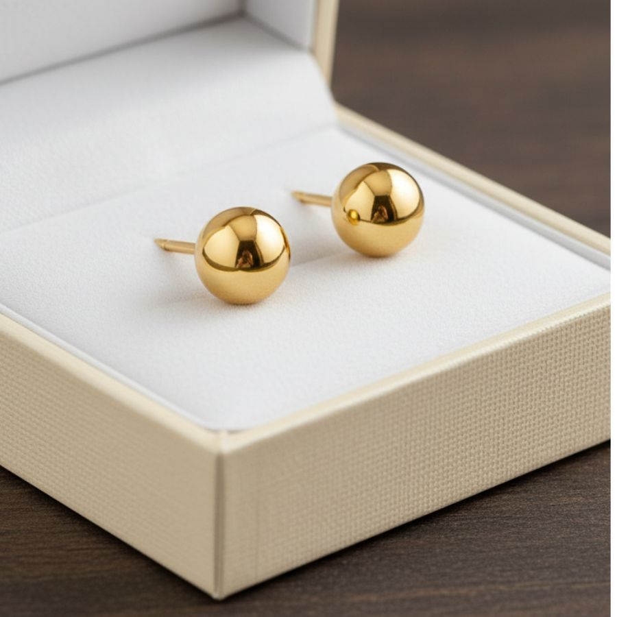 Brinco Feminino De Bolinha Lisa Banhado A Ouro 18k Elegante