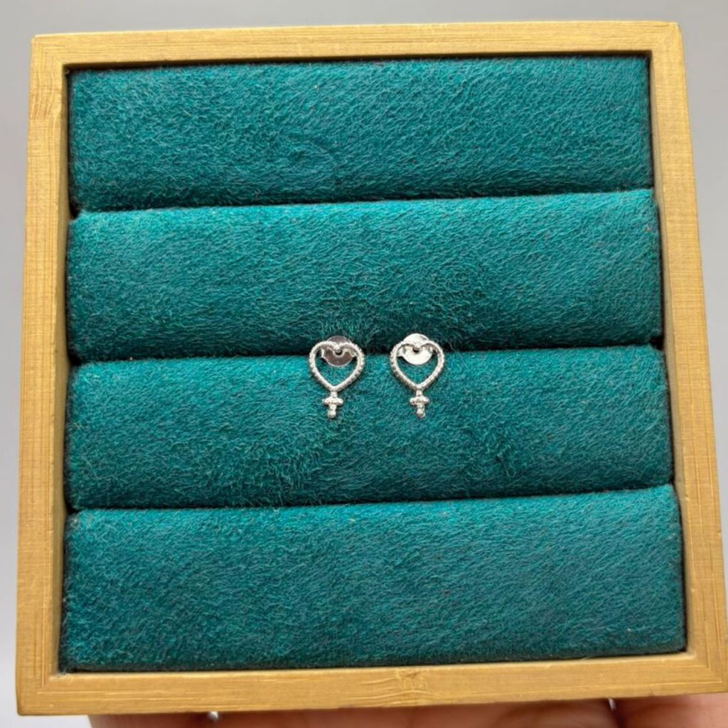 Brinco Feminino de Prata 925 Coração Detalhado e Cruz
