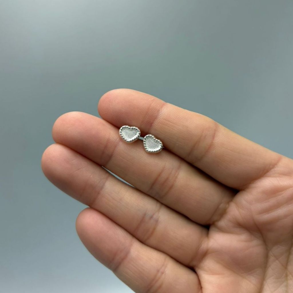 Brinco Feminino de Prata 925 Coração Detalhado