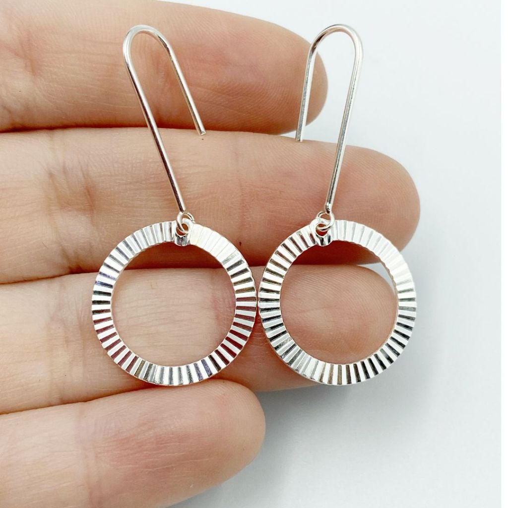 Brinco Feminino de Prata 925 Gancho Redondo Vazado Diamantado
