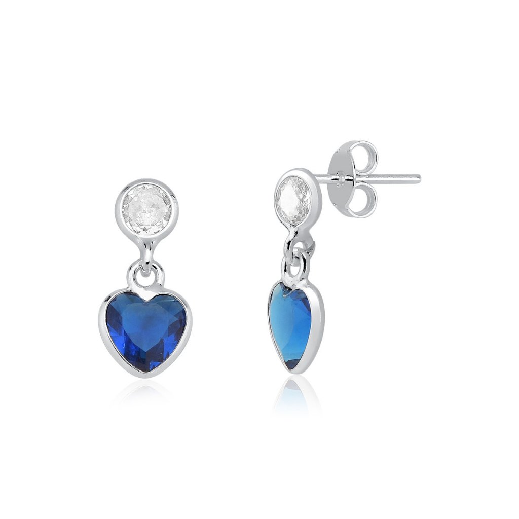 Brinco Feminino de Prata 925 Ponto de Luz e Coração Pendurado