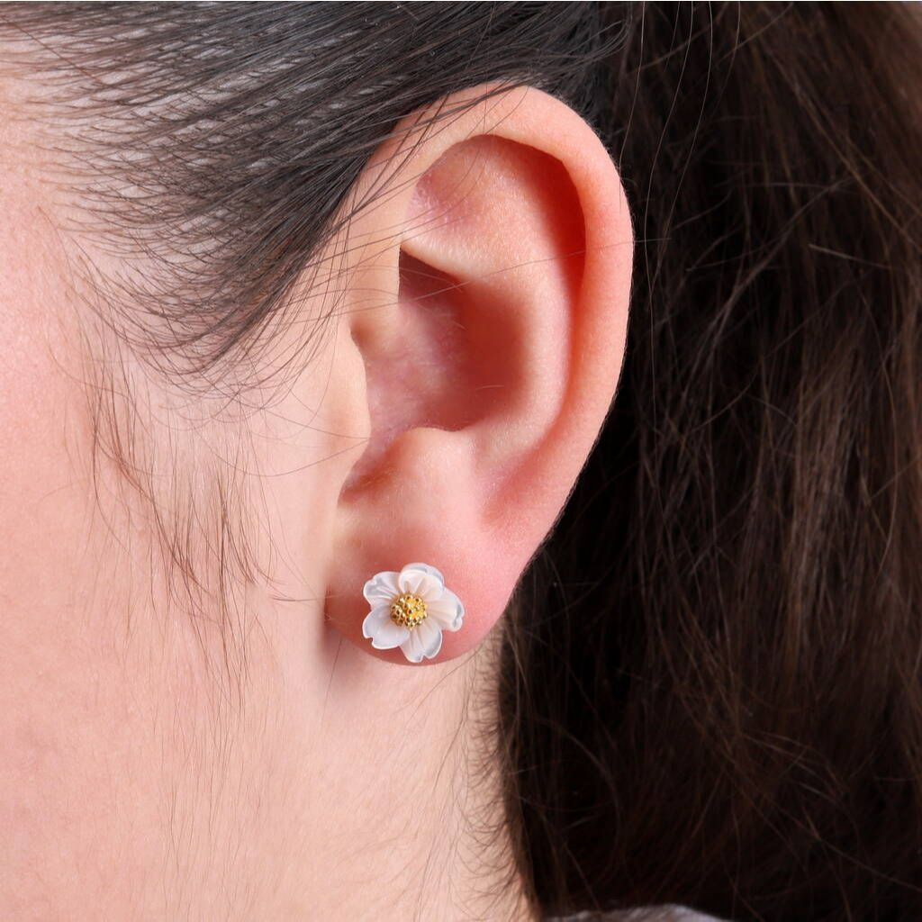 Brinco Feminino Flor Resina Delicado Folheado Minimalista Pra Mulher BR83