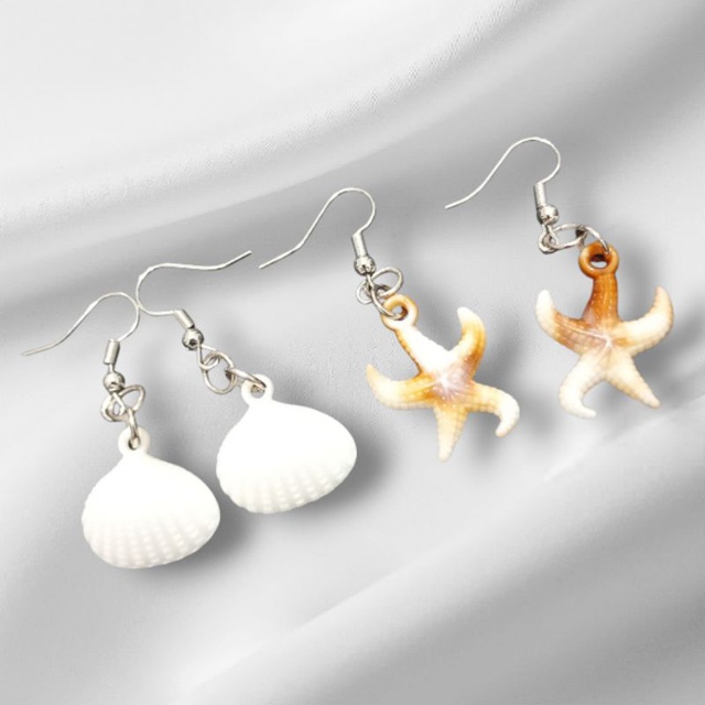kit com 2 brincos femininos 1 brinco de conchas 1 brinco de estrela do mar Lindos, ideal para dia a dia.