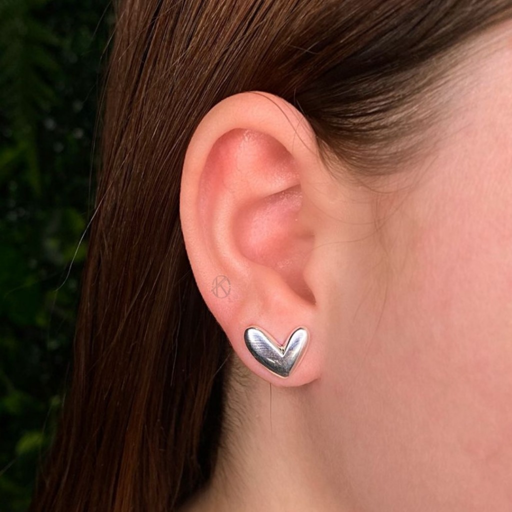 Brinco Feminino Minimalista Coração Liso Abaulado Delicado Semijóia Banhada em Ouro 18k ou Prata 925