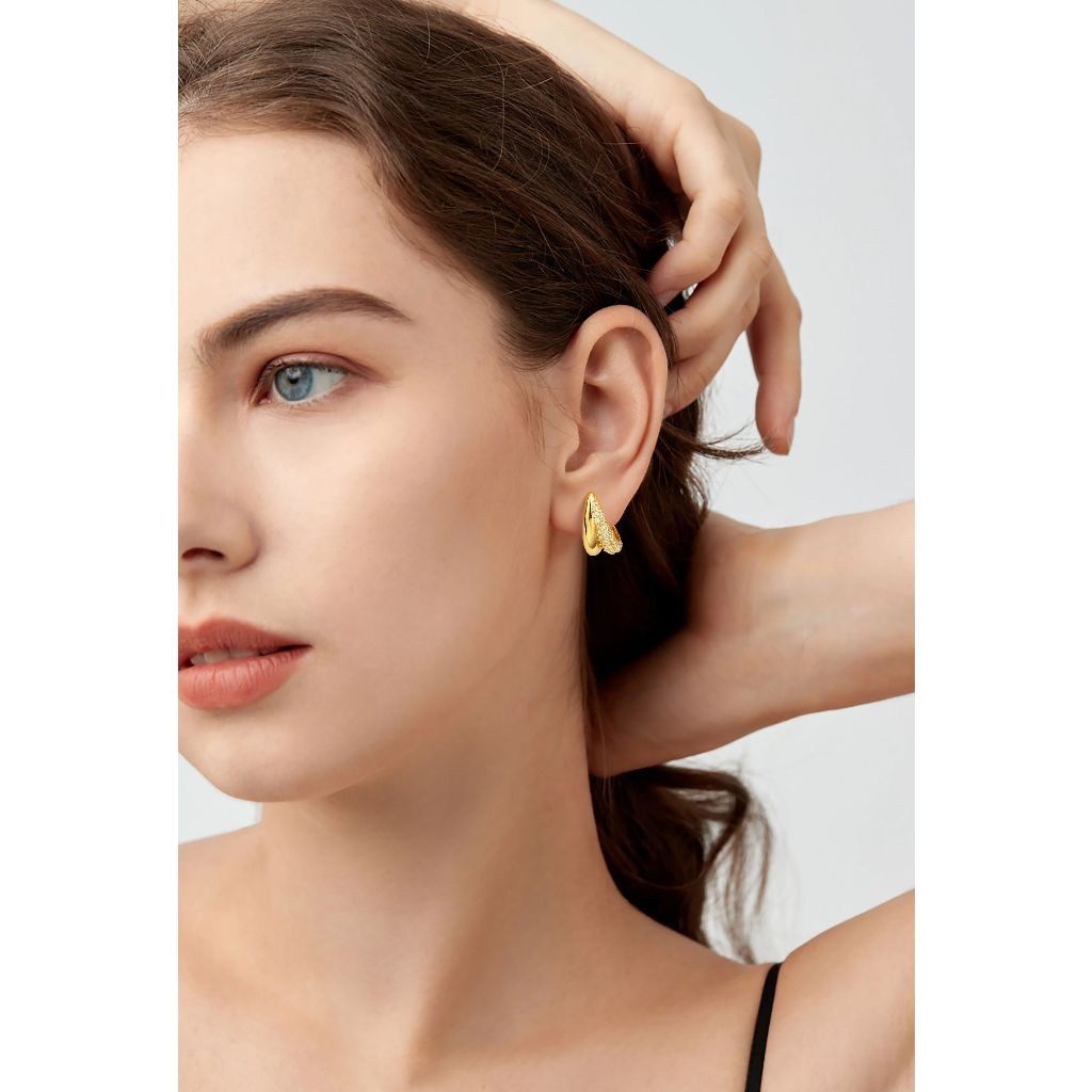 Brinco Femininos Delicado Elegante Antialérgico Folheado Ouro 18k a Platina Uma Fileira Zircônia Cravejada