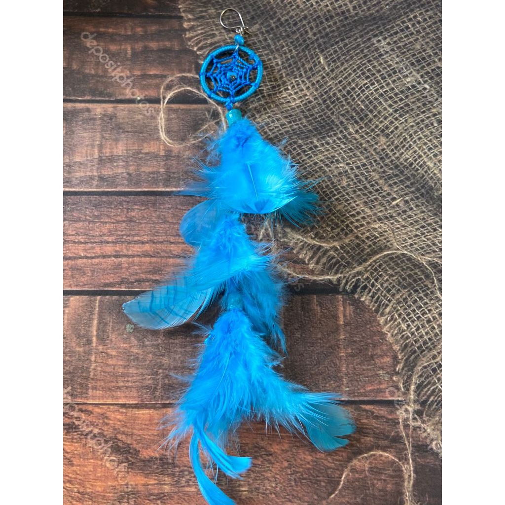 Brinco Filtro do Sonhos Solitário de Pena Cor Azul Produto feito artesanalmente. penas artificiais Envio Imediato