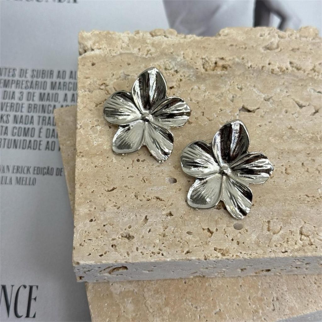 Brinco Flor Banhado Ródio Branco Prata