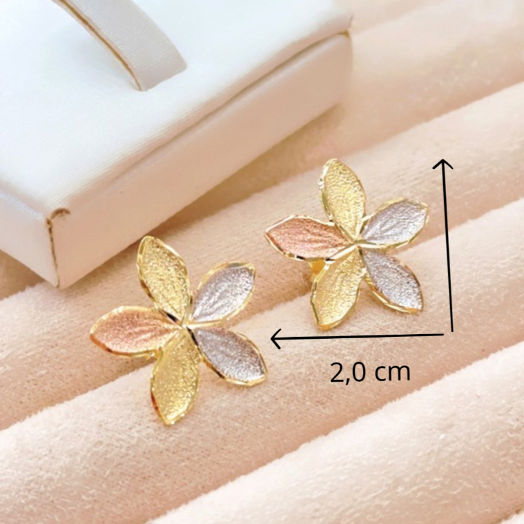 Brinco Flor Três Ouros Folheado a Ouro 18K - Hipoalergênico