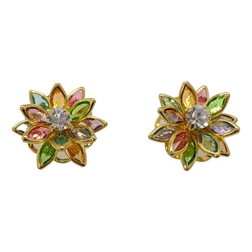 Brinco Folheado a Ouro Flor Pétalas Navete - Excelente Acabamento