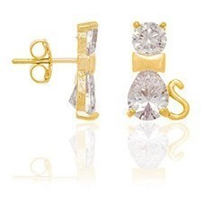 DESCRIÇÃO DO PRODUTO - BRINCO FORMATO GATO COM ZIRCÔNIAS. MED 1,9 CM. SkuCompleto 5239030006