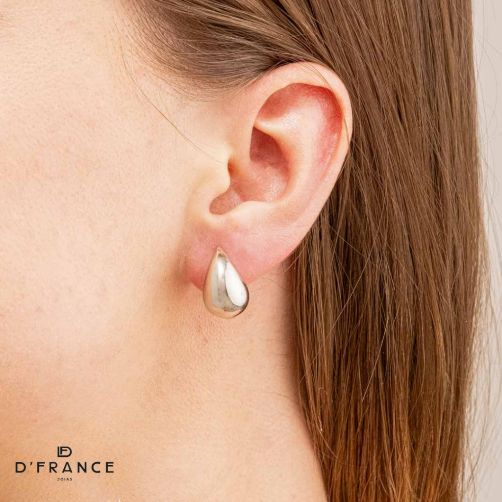 Brinco Gota Virgula Banhado No Ródio Branco - D France Semijoias