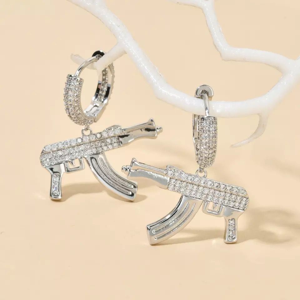 Brinco Ice Cravejado Modelo Arma Argola Hip Hop Premium A+++