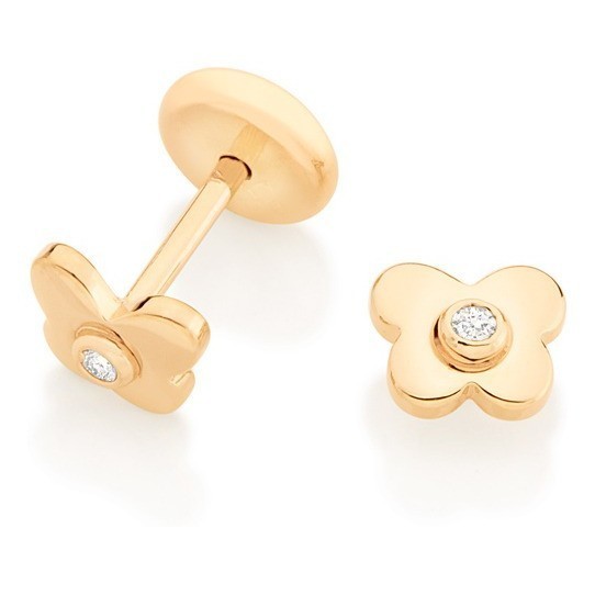 DESCRIÇÃO DO PRODUTO - BRINCO INFANTIL NO FORMATO BORBOLETA, COMPOSTO POR 2 ZIRCÔNIAS DE 1,25 MM. MED 0,50 CM X 0,50 CM SkuCompleto 5263950006