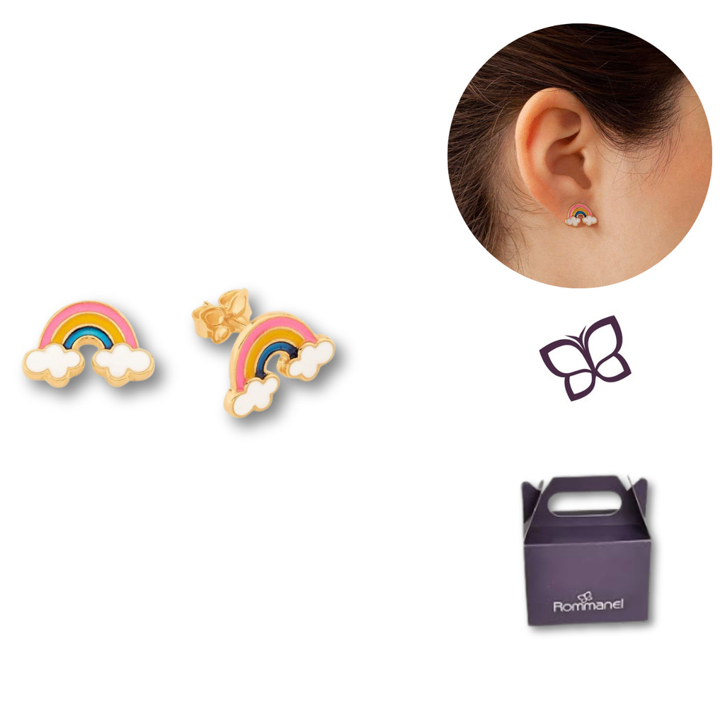 Brinco Infantil De Arco-íris Com Nuvens - Rommanel Original Colorido Folheado a Ouro antialergico