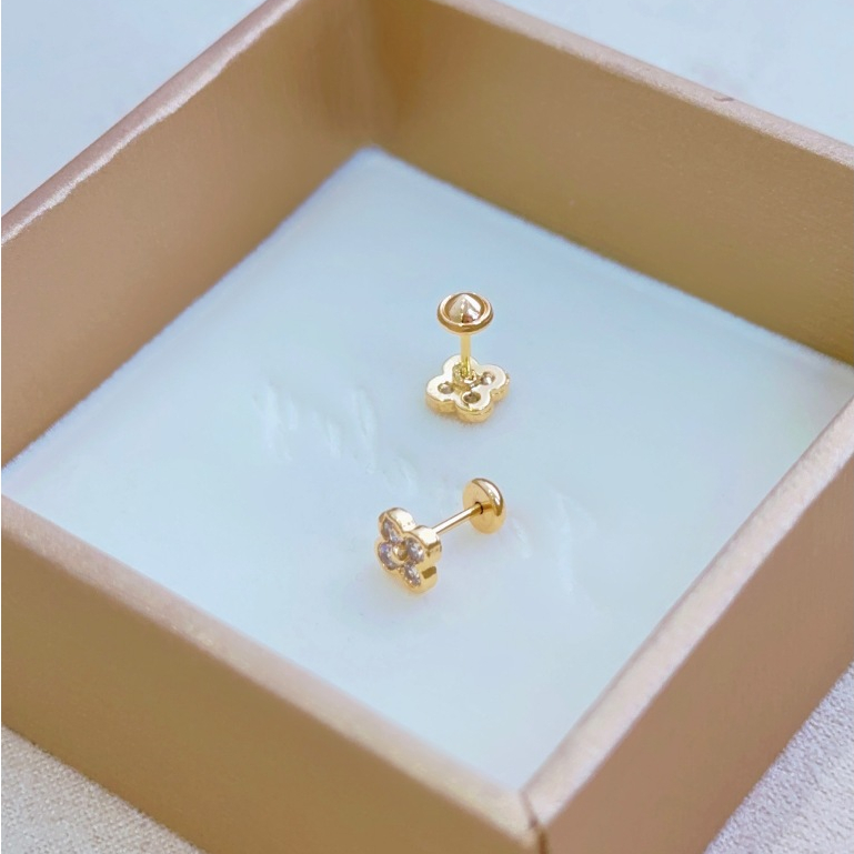 Brinco Infantil Flor Inspiração Folheado a Ouro 18K - Hipoalergênico com Tarraxa Baby de Segurança