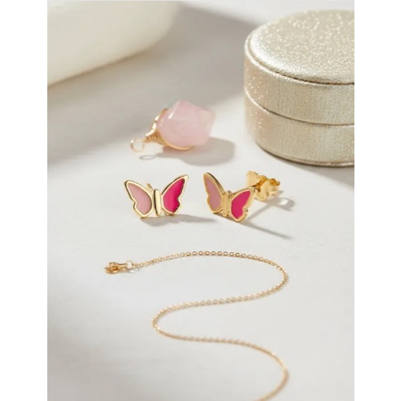 Brinco Infantil Rommanel Banhado Ouro Borboleta Rosa 526502 Cor Dourado Rosa