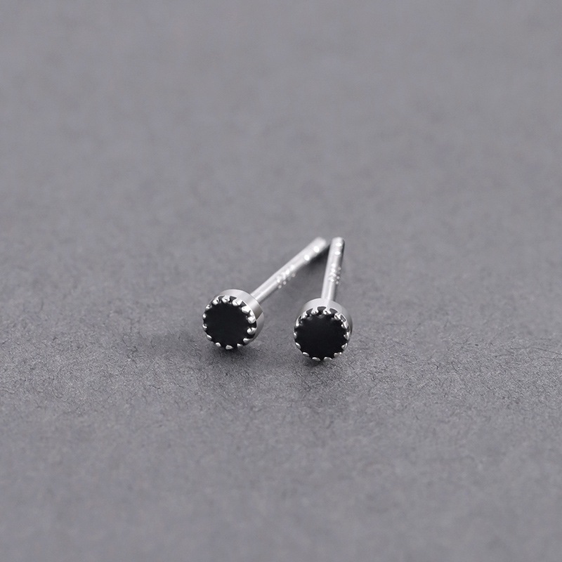 Brinco Masculino Ponto Preto Pequeno Minimalista Social Inox