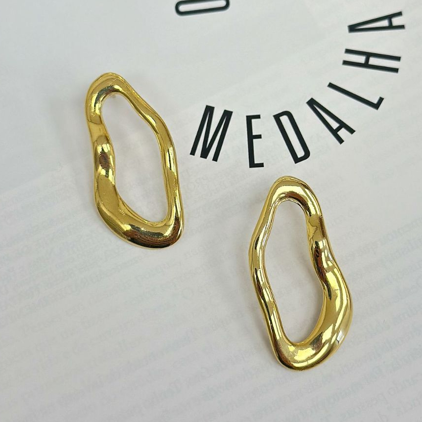 Brinco Orgânico Vazado Ondulado Banhado a Ouro 18k