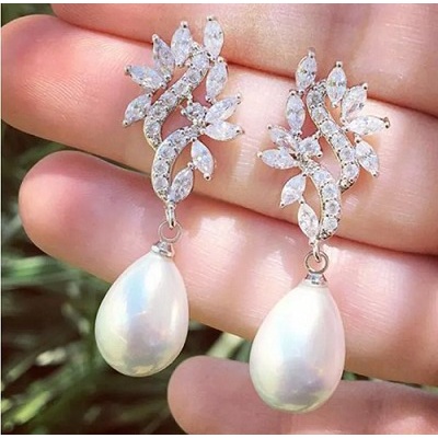 Brinco Perola E Zirconia Noiva Pequeno Delicado Prata Gota