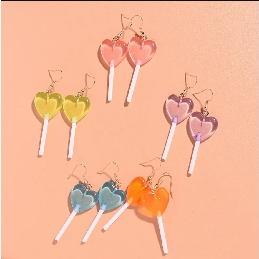Brinco pirulito coração/ brinco amor /par de brincos em formato de doces/ brinco aesthetic fofo