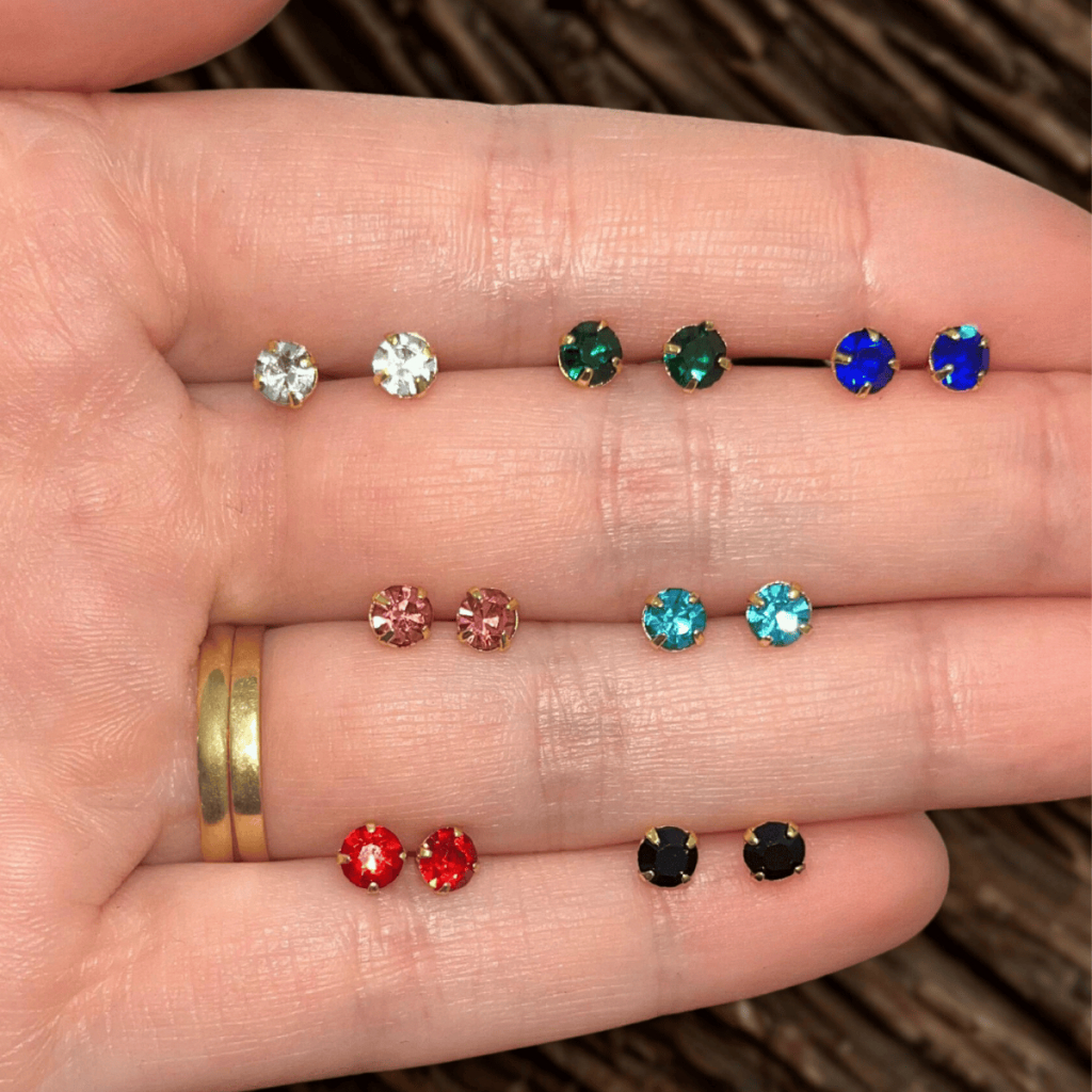 Brinco Ponto de Luz Colorido 4mm Banhado Ouro 18k Hipoalergênico