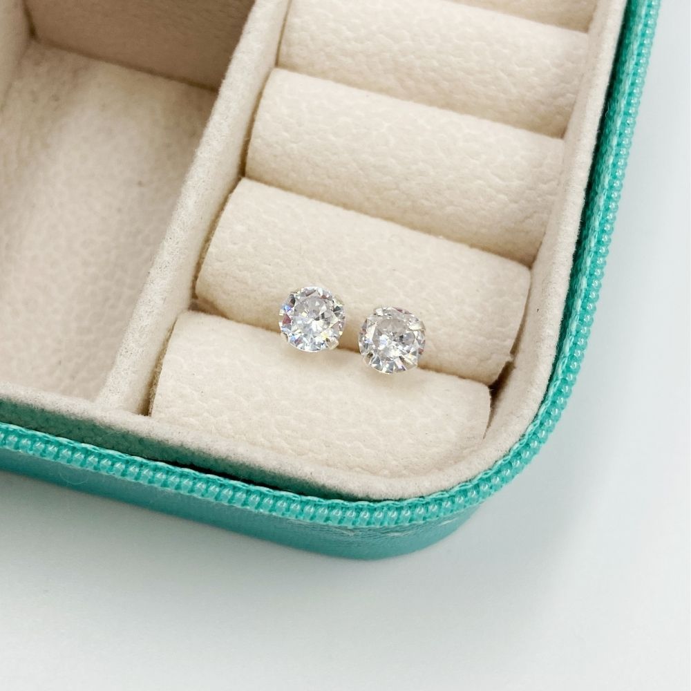 Brinco ponto de luz prata 925 zirconia redondo 6mm