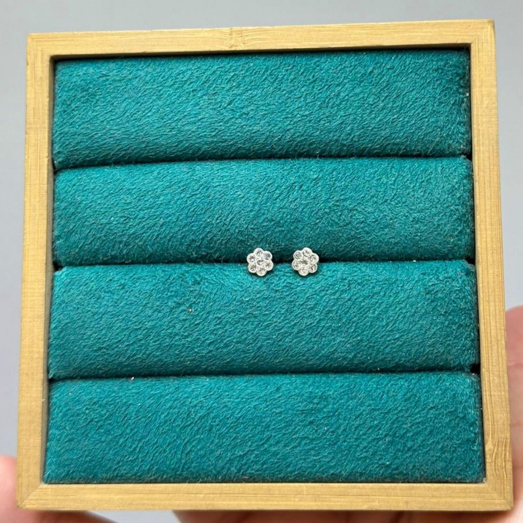 Brinco Prata 925 Florzinha com Zircônias Infantil ou Segundo Furo