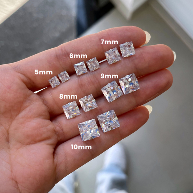 Brinco Prata 925 Masculino e Feminino Ponto de Luz Pedra Zircônia Quadrada Brinco Quadrado de Prata