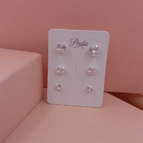 Brinco Prata 925 trio coração ponto de luz zircônia 3 4 e 5 mm