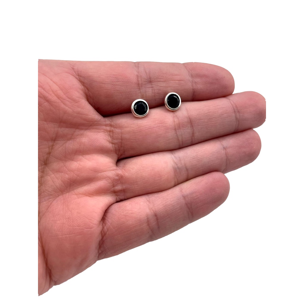 Brinco Redondo Prata 925 Ponto de Luz 6mm Preto