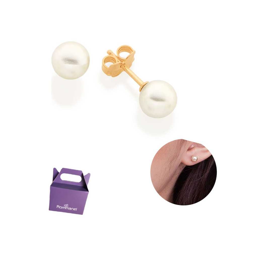 Brinco Rommanel Banhado Ouro 18k Pequena Pérola 6 Mm Bonito 520187