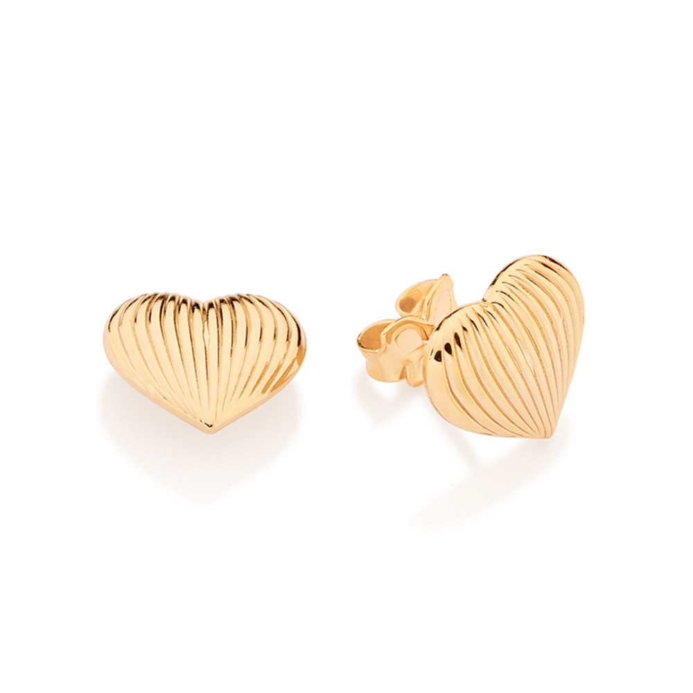 Brinco Rommanel Coracao Abaulado Frisos Ouro 18k 527548