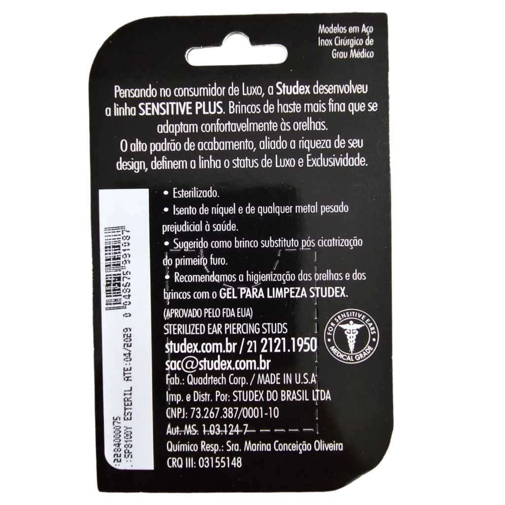 VAI COM UMA TARRAXA COMUM SEM NÍQUEL Buscando solucionar o problema de alergia à brincos tradicionais, a Studex desenvolveu a linha Sensitive - brincos fabricados com materiais de alta qualidade e que não causam irritações na pele. PÓS-PERFURAÇÃO Recomendado como brinco substituto pós-cicatrização da perfuração, devido a sua alta qualidade e conforto no uso diário. Os brincos têm haste mais fina proporcionando fácil adaptação, mesmo para orelhas sensíveis GARANTIA DE HIGIENE Os brincos Sensitive vêm em embalagens lacradas e esterilizadas, conferindo a total higiene e garantia de exclusividade de primeiro