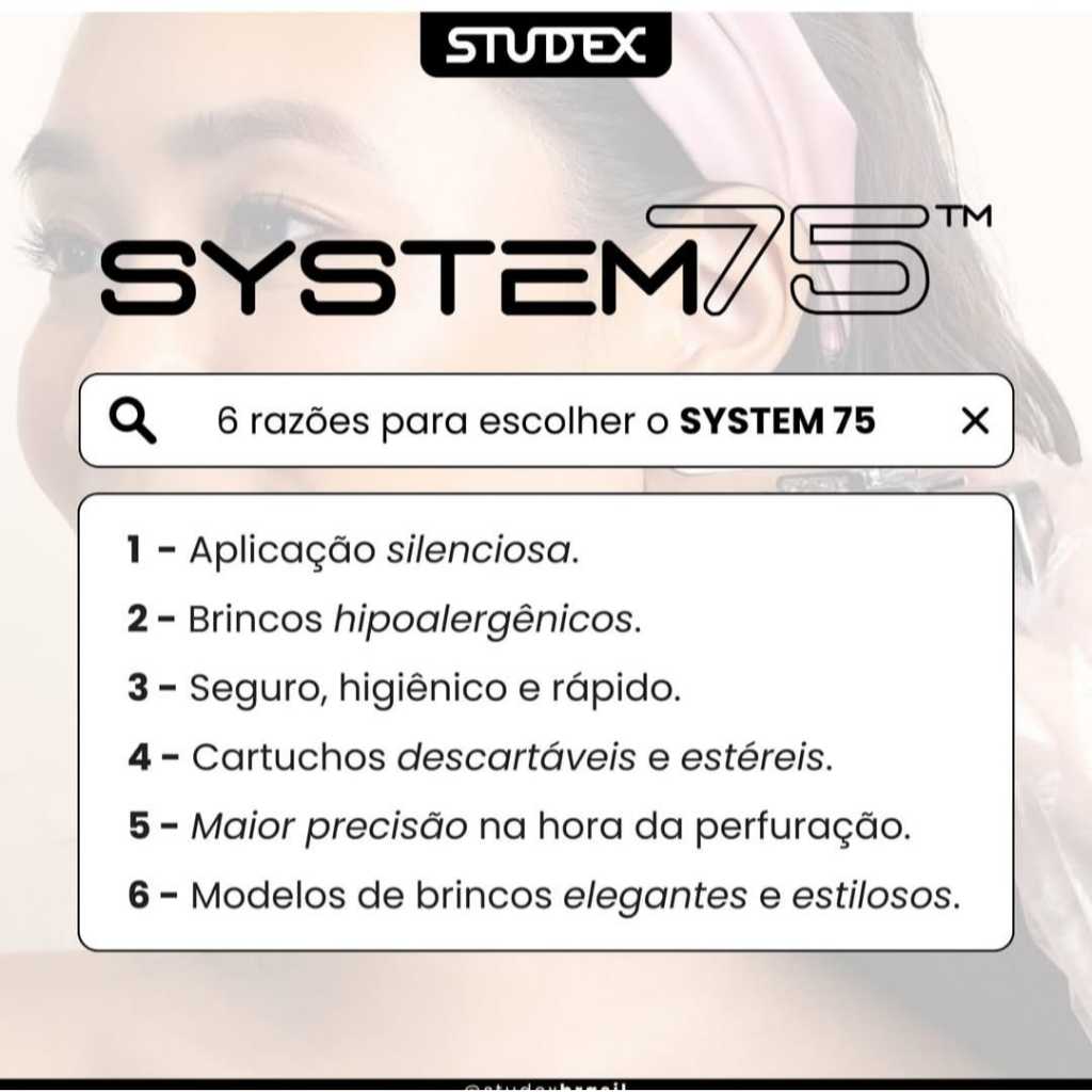 A LINHA DE BRINCOS QUE TODA MAMÃE ESPERA. SUCESSO GARANTIDO DE VENDAS! Linha profissional de melhor margem da categoria, sem similaridade no mercado, foi especialmente desenvolvida para aplicação de brincos em bebês e crianças de até 10 anos de idade. De colocação rápida, precisa e silenciosa sem incomodar as crianças. Mais segurança e tranquilidade para o profissional.A linha Baby System75 tem em seu diferencial a haste mais fina e curta que se ajustam confortavelmente nas pequenas orelhinhas das bebês e crianças. As tarraxas do Baby System75 são anatômicas, possuem maior área de ventilação e no ato da aplicação, se encaixam na trava do brinco, protegendo a ponta perfurante, facilitando a limpeza do local e permitindo perfeita cicatrização. SILENCIOSO De colocação rápida, precisa e silenciosa, elimina o susto na criança e torna o incômodo menor. Mais segurança e tranquilidade para o profissional, além de proporcionar uma aplicação praticamente indolor. SUCESSO GARANTIDOLinha profissional de melhor margem da categoria, sem similaridade no mercado. Desenvolvida para aplicação de brincos em bebês e crianças de até 10 anos de idade. O Baby System 75 é o melhor brinco estéril para aplicação em bebês. ESTERILIZADO INDIVIDUALMENTE Embalado e esterilizado de forma individual, garante a segurança asséptica, já que enquanto é feita a primeira aplicação o outro cartucho permanece estéril. HASTES E TARRAXAS A haste mais fina e curta se ajusta com conforto nas pequenas orelhas dos bebês e crianças. Já as tarraxas anatômicas, possuem maior área de ventilação e se encaixam na trava do brinco, protegendo a ponta perfurante e facilitando a limpeza do local, o que garante uma cicatrização excelente Brincos Baby Disponíveis em oito lindos e delicados modelos, os brincos Baby tem postes de perfuração mais finos e mais curtos que se ajustam confortavelmente as orelhinhas pequenas. Devido sua característica antialérgica, após o período de cicatrização dos furos, os brincos continuam lindos e podem ser usados continuamente. O Baby System 75 é o único brinco esterilizado próprio para bebês e crianças até 10 anos.