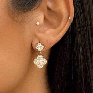Brinco Trevo Cravejado com Microzircônias Presente Mulher Blogueira Estilosa
