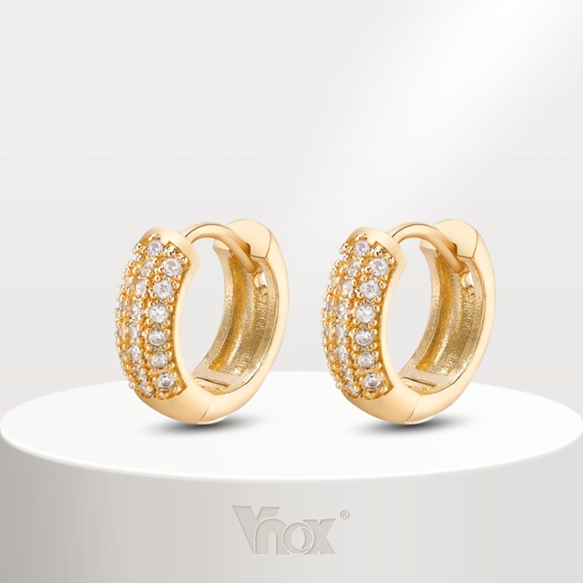 Brinco Vnox 24K Zircon Cubic Small Cute Hoop Earring , Hipoalergênico Brilhante Para Menina Feminina