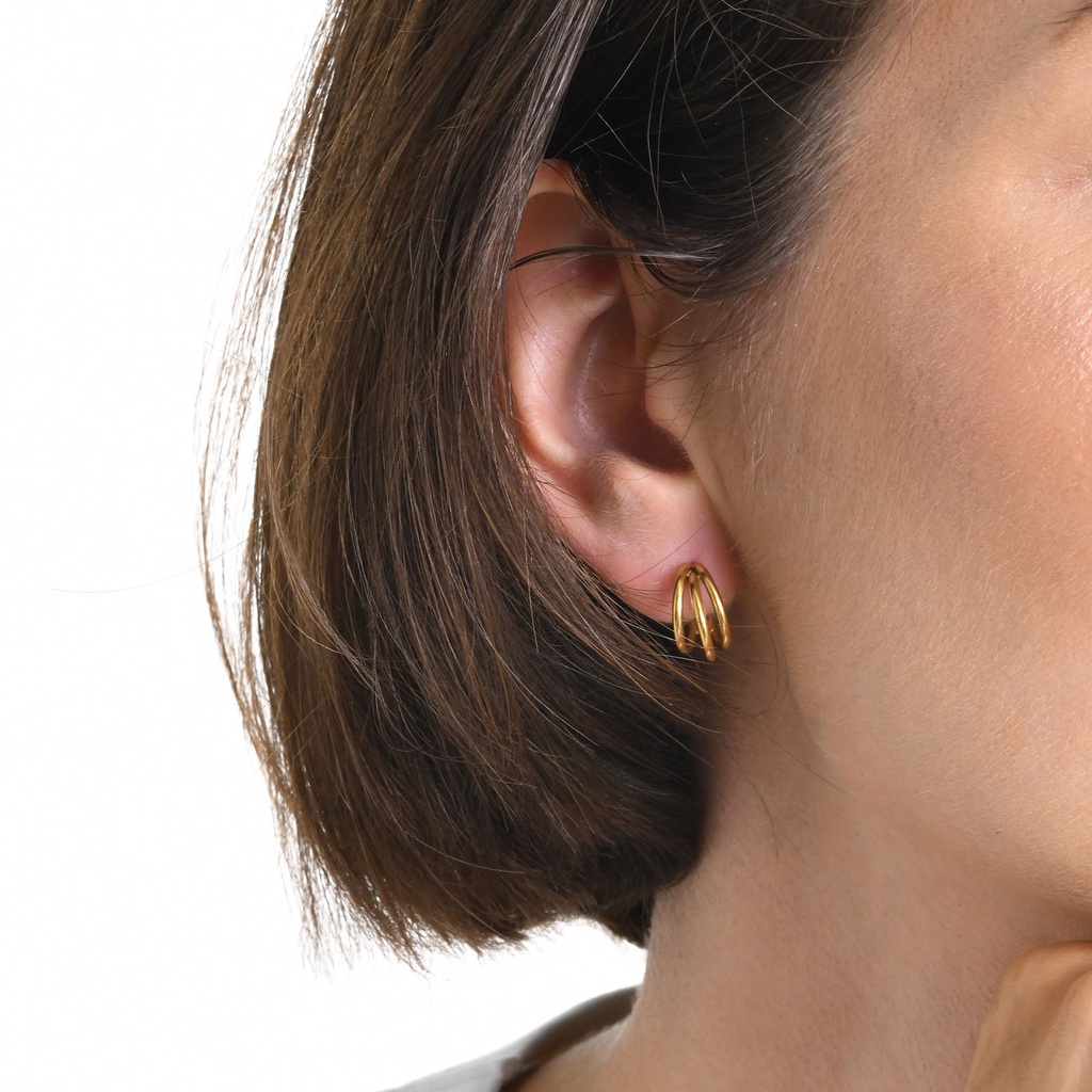 Brinco Vnox Três Fios Em Forma De C Para Menina Feminina , Ouro 18K Hipoalergênico De Aço Inoxidável