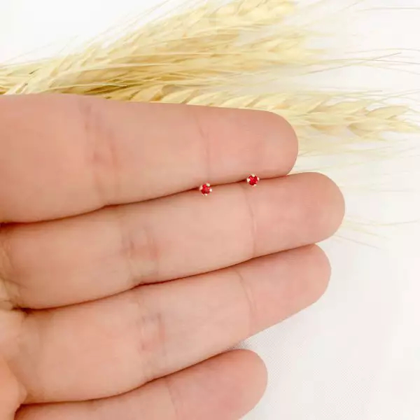 Brinco Zircônia Redondo Vermelho Ponto de Luz Prata 925 2mm