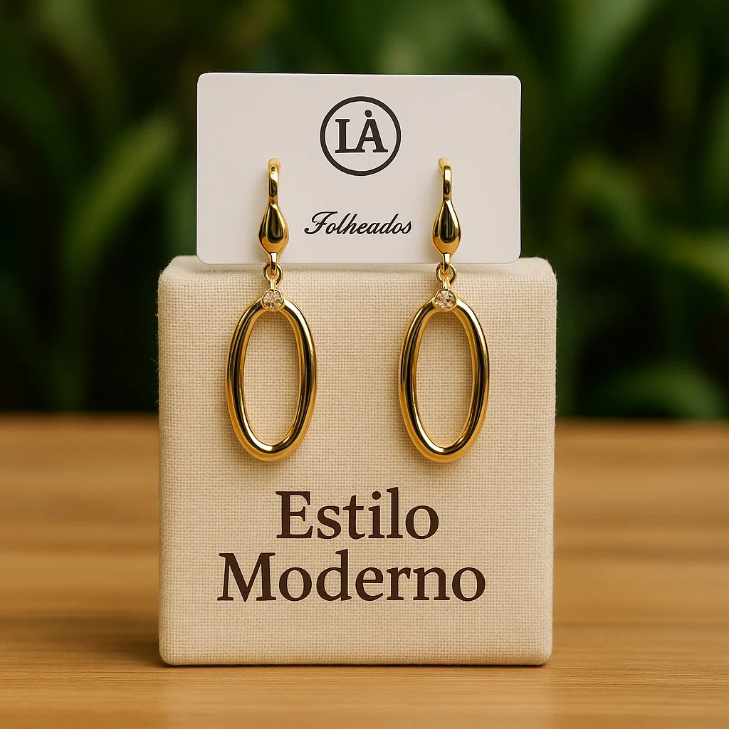 Brincos 18K Oval Moderno Feminino — Leve, Confortável, Antialérgico