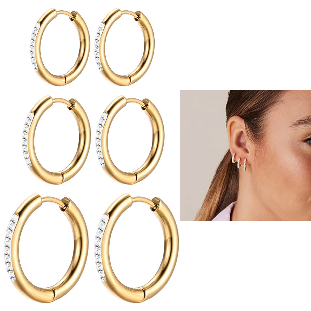 Brincos Argola Fina Dourada 3 Pares em - AÇO INOX