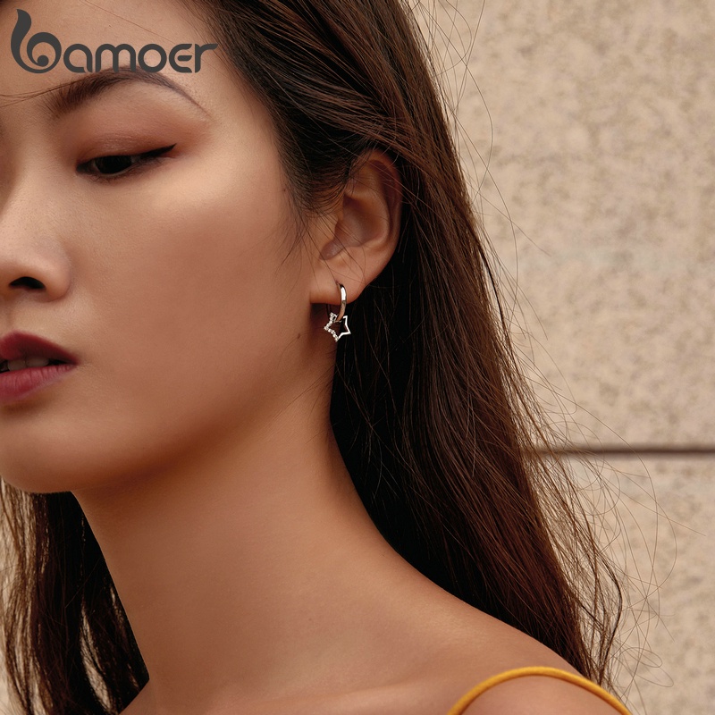 Brincos Bamoer 925 Estrela De Prata Da Lua Ganchos De Orelha Femininos Fashion Jewelry