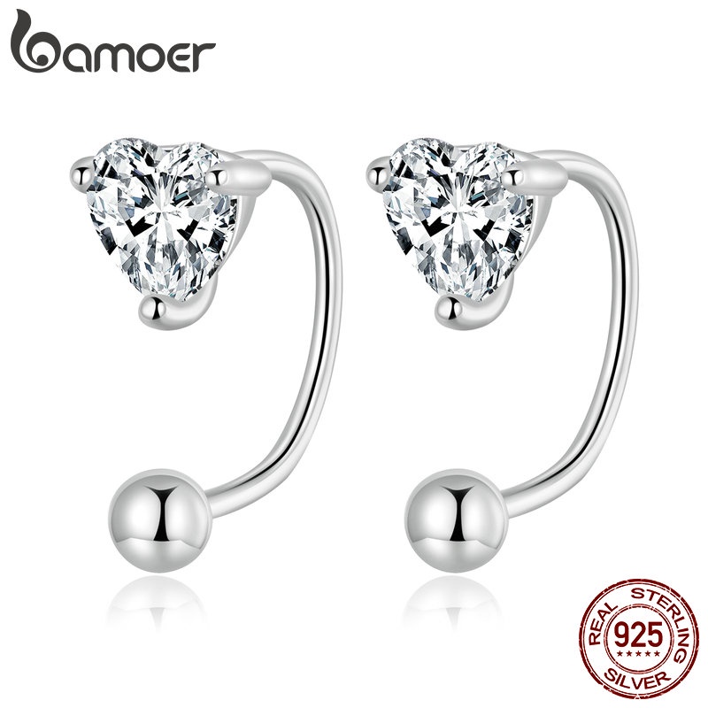 Brincos Bamoer 925 Prata Amor Zircônia Rosqueada Orelha Cravos De Moda Joias Presentes Para Mulheres