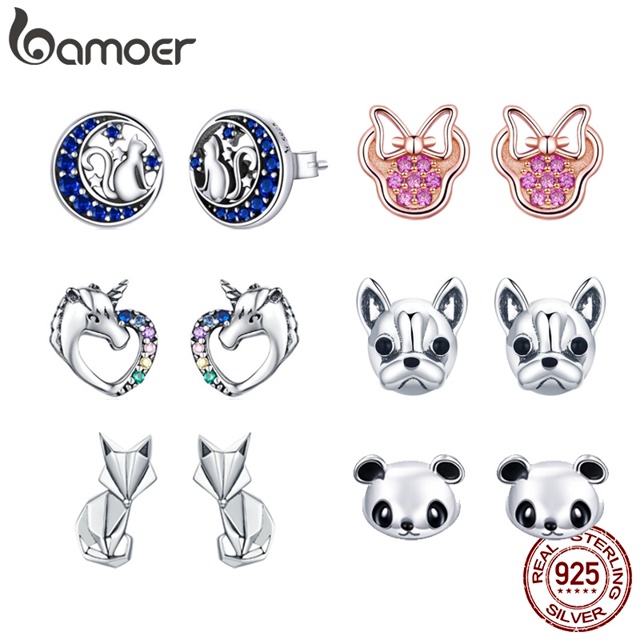 Brincos Bamoer 925 Prata Animal De Estimação Cachorro Gato Orelha Pinos Fashion Joias Para Mulheres Presente PAS414