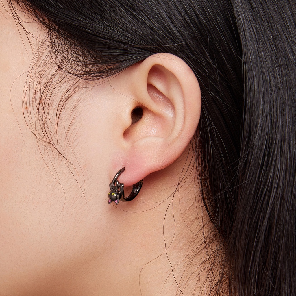 Brincos Bamoer 925 Prata De Gato Preto Jóias De Moda Para Meninas SCE965
