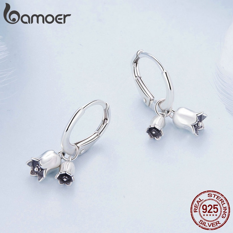 Brincos Bamoer 925 Sterling Silver Flower Lírio Do Vale Jóias Estilo Mulher