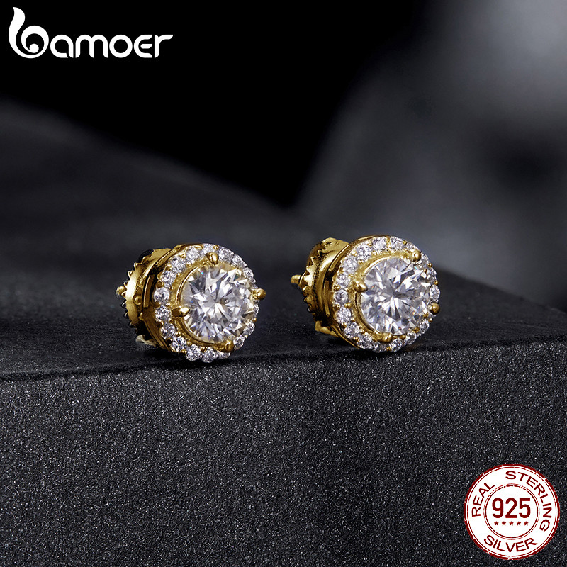 Brincos Bamoer 925 Sterling Sliver 1ct Moissanite Cor Dourada Joias Brilhantes Presentes Para Mulheres