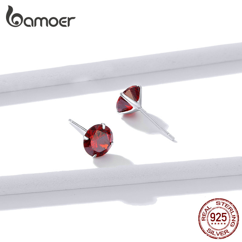 Brincos Bamoer 925 Sterling Sliver Com Design De Zircônia Única , Presentes Simples Para Mulheres BSE166-RD