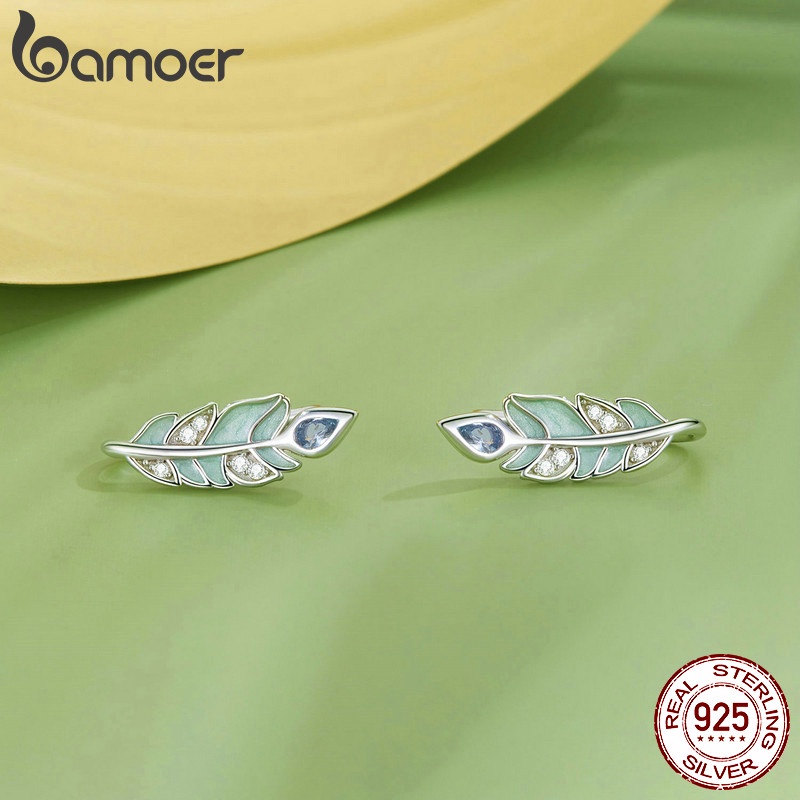 Brincos Bamoer 925 Sterling Sliver Earrings Floresta Verde Estilo Borboleta Design Orelha Barbatanas Jóias Presentes Para Mulheres